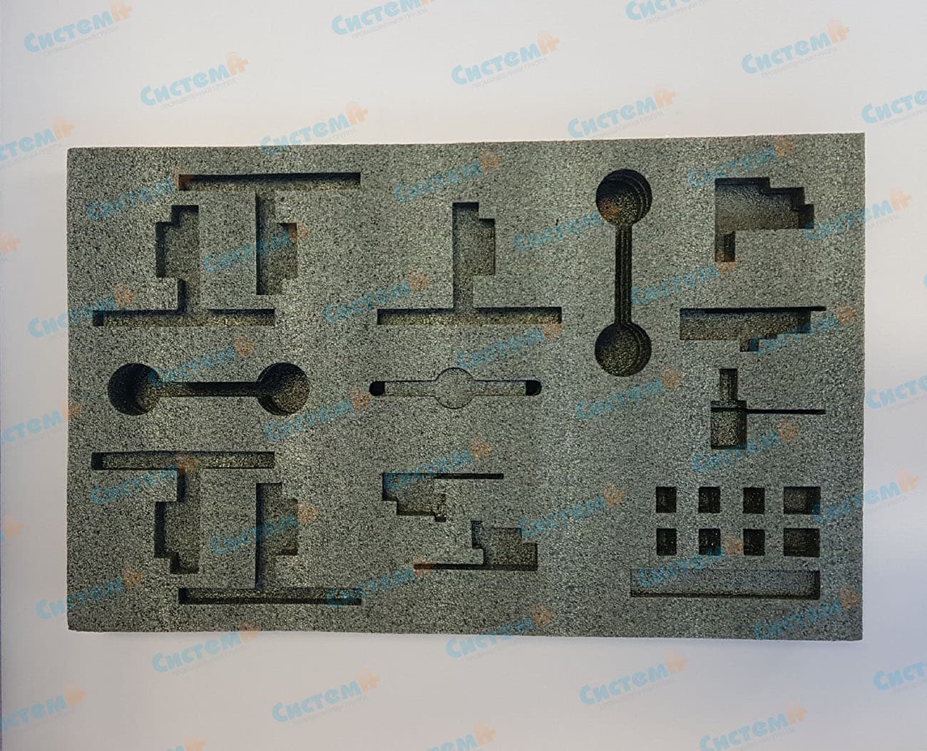 Легкие, ударопрочные многосоставные ложементы изготовили из несшитого вспененного полиэтилена. Этот полимерный материал имеет высокую амортизацию, хорошо устойчив к разрывам, не имеет запаха, не пылит.